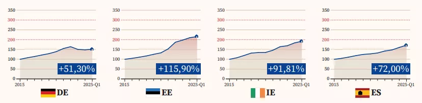 According to the study, prices in Germany are up by half compared to ten years ago. In Ireland, prices have risen by more than 90 percent in Ireland. Homes have more than doubled in price in Estonia compared to ten years ago.